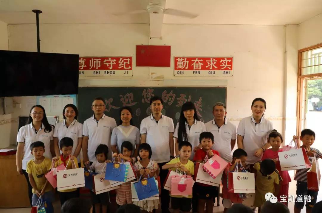 清远阳山县属于广东省委、省政府确定的扶贫开发重点县名单,宝凯道融响应广东省商业保理协会的号召,为贫困学子献爱心,连同广东省商业保理协会及会员单位为田庄村小学贫困学子送上图书、文具和生活用品,开展爱心助学与中秋慰问活动,让山区的孩子们也能感受到社会的温暖,星星之火点亮孩子们的心,鼓励他们在求学向上的道路上自立自强,认真刻苦学习。清远阳山县属于广东省委、省政府确定的扶贫开发重点县名单,宝凯道融响应广东省商业保理协会的号召,为贫困学子献爱心,连同广东省商业保理协会及会员单位为田庄村小学贫困学子送上图书、文具和生活用品,开展爱心助学与中秋慰问活动,让山区的孩子们也能感受到社会的温暖,星星之火点亮孩子们的心,鼓励他们在求学向上的道路上自立自强,认真刻苦学习。